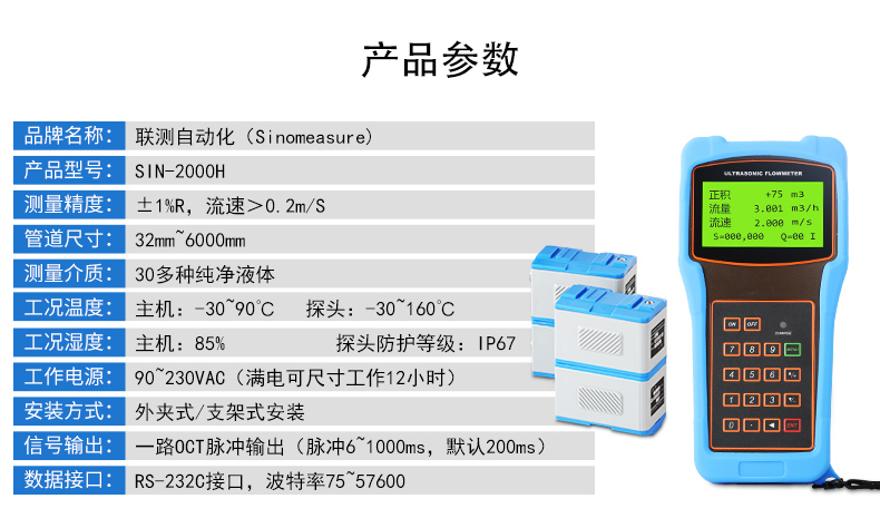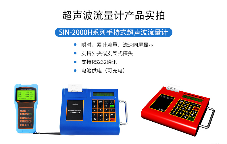 产品简介:SIN-2000H手持式超声波流量计,是目前国内体积小、质量轻、真正意义上的便携式超声波流量计,该款产品具有数据自动存储、测量精度高、全中文显示、操作灵活等特点,性价比高。