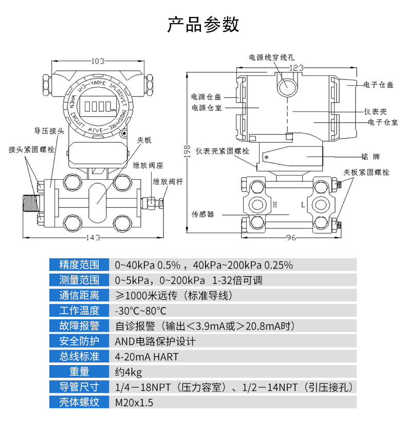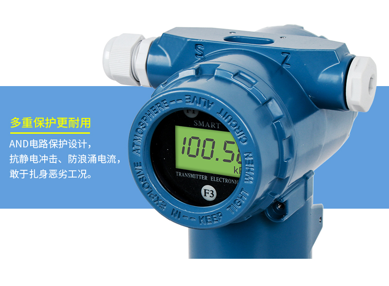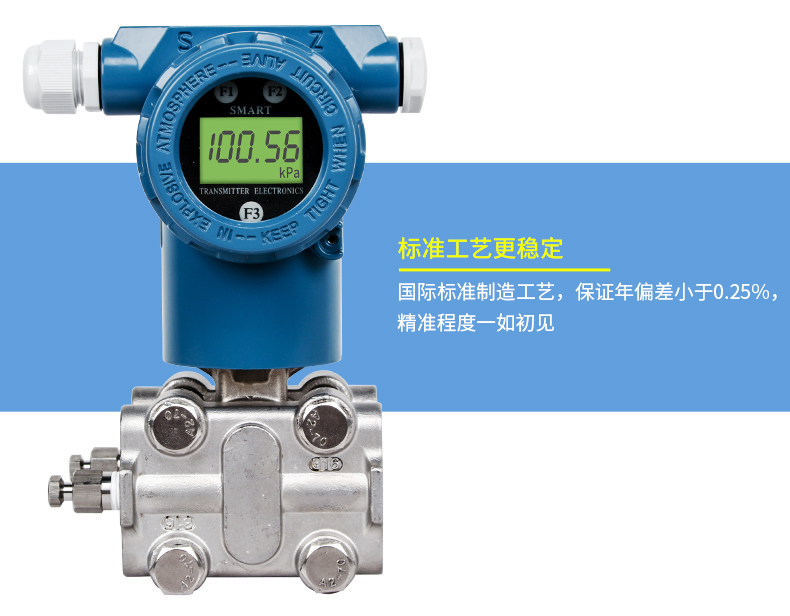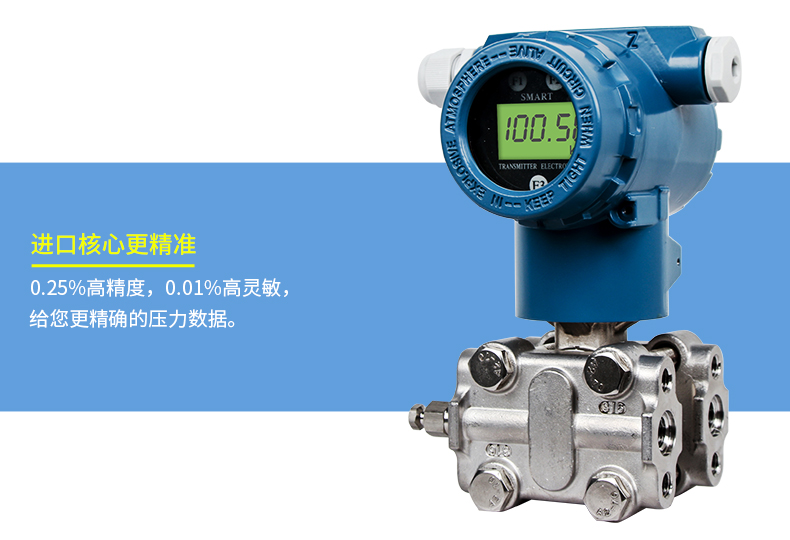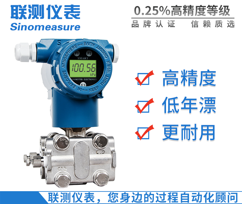 产品简介:SIN-3051系列压力变送器利用差动电容检测的原理,当膜片两侧压力不一致时,使容室中测量膜片产生位移,其位移量与压力差成正比,通过电路处理将电容变化量转换成4~20mA的二线制电流或电压信号,可带上458协议或者HART通讯协议功能。该变送器具有坚固抗振,量程,零点和阻尼现场连续可调。