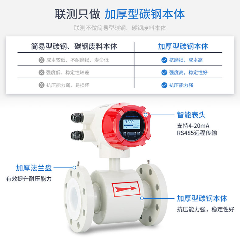 产品简介:联测LDG电磁流量计适用于化工助剂、海绵城市、给水排水、水利灌溉、水处理、污水处理(环保污水控制、化工污水、电镀污水)、造纸浆液(纸浆)、泥浆、医药原料、食品等工农业的生产公司过程流量测量和控制,标配485通讯功能。