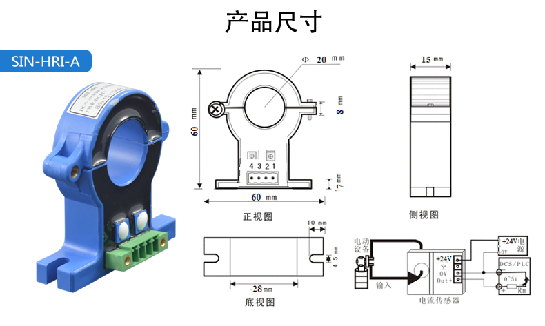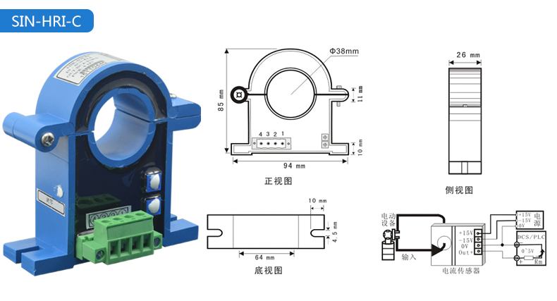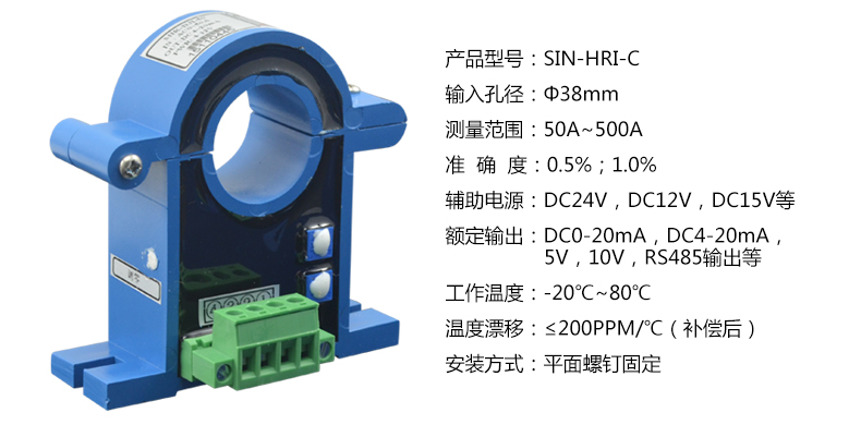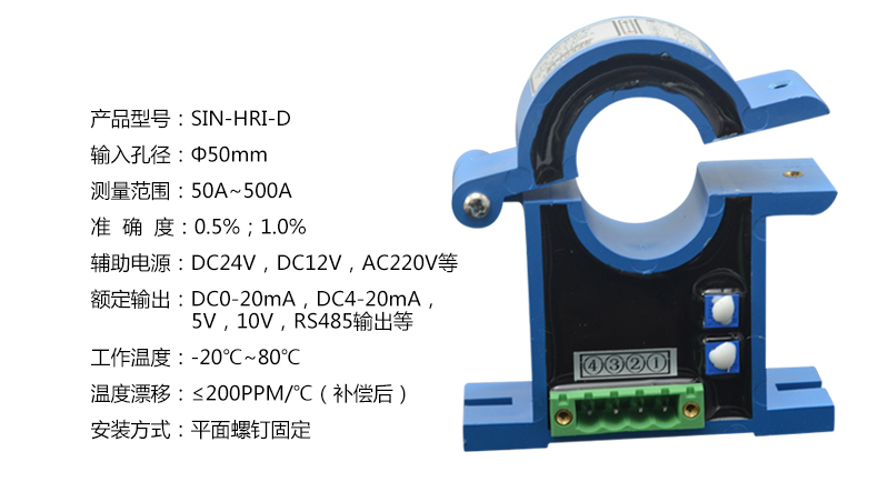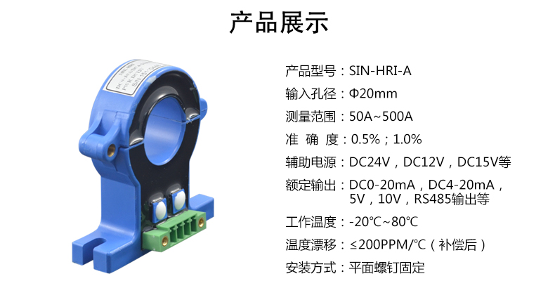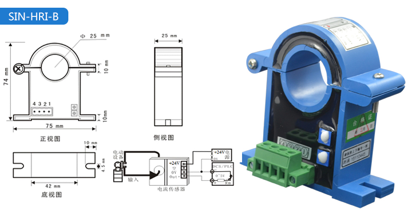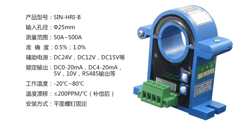 产品简介:电流变送器可以直接将被测主回路交流电流或者直流电流转换成按线性比例输出DC4~20mA(通过250Ω 电阻转换DC 1~5V或通过500Ω电阻 转换DC2~10V)恒流环标准信号,连续输送到接收装置(计算机或显示仪表)。
