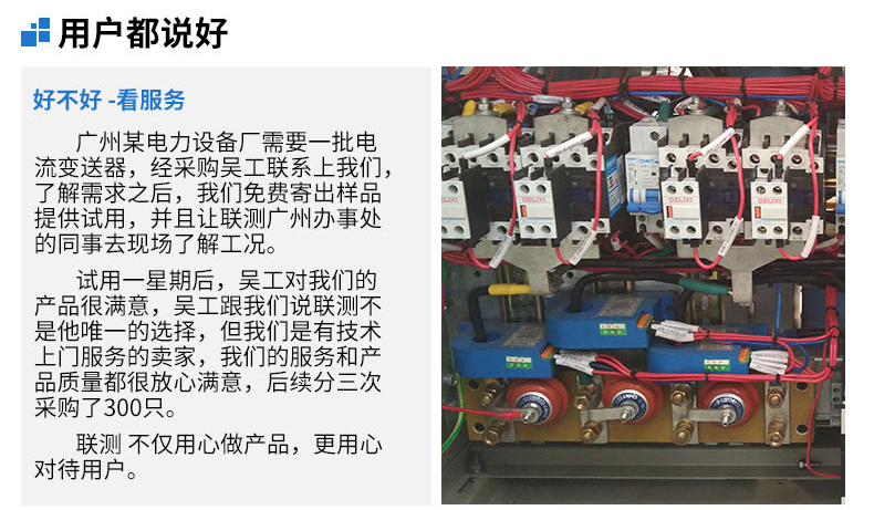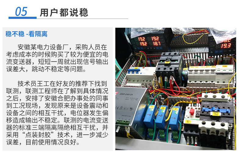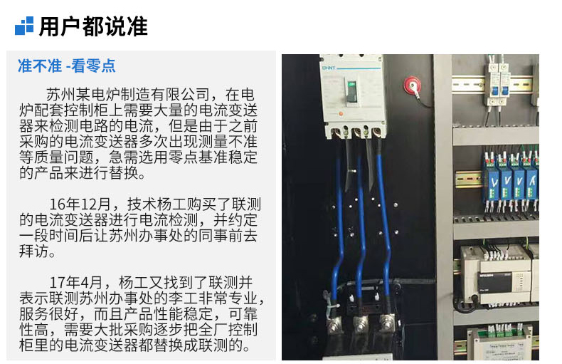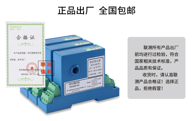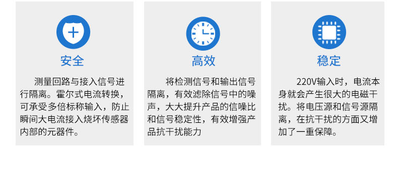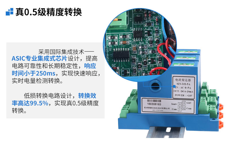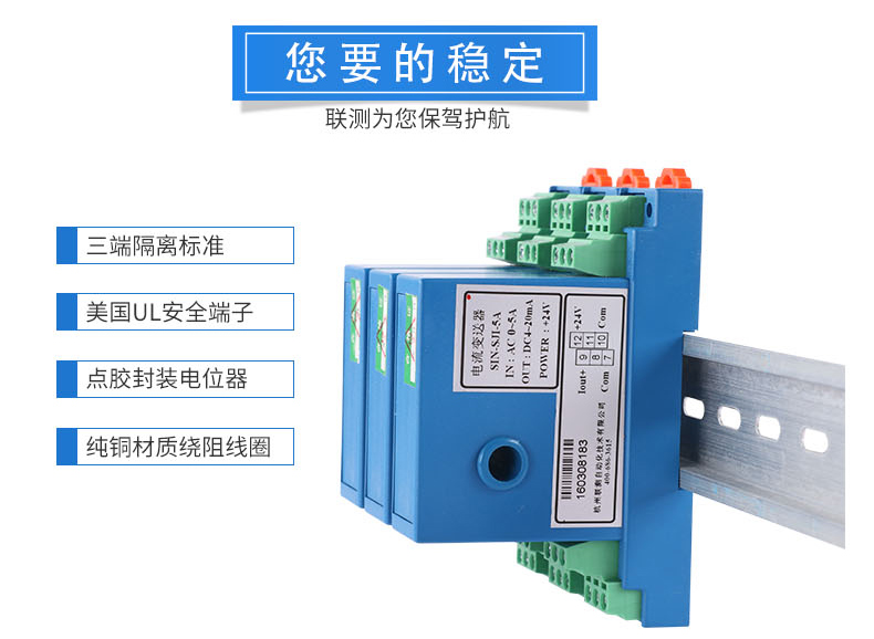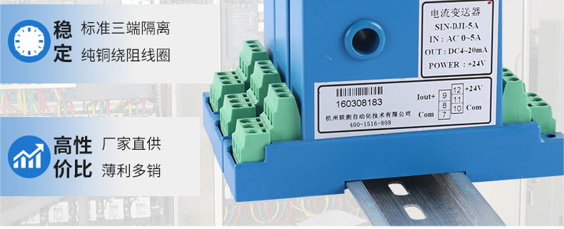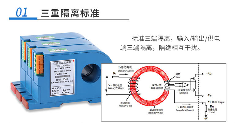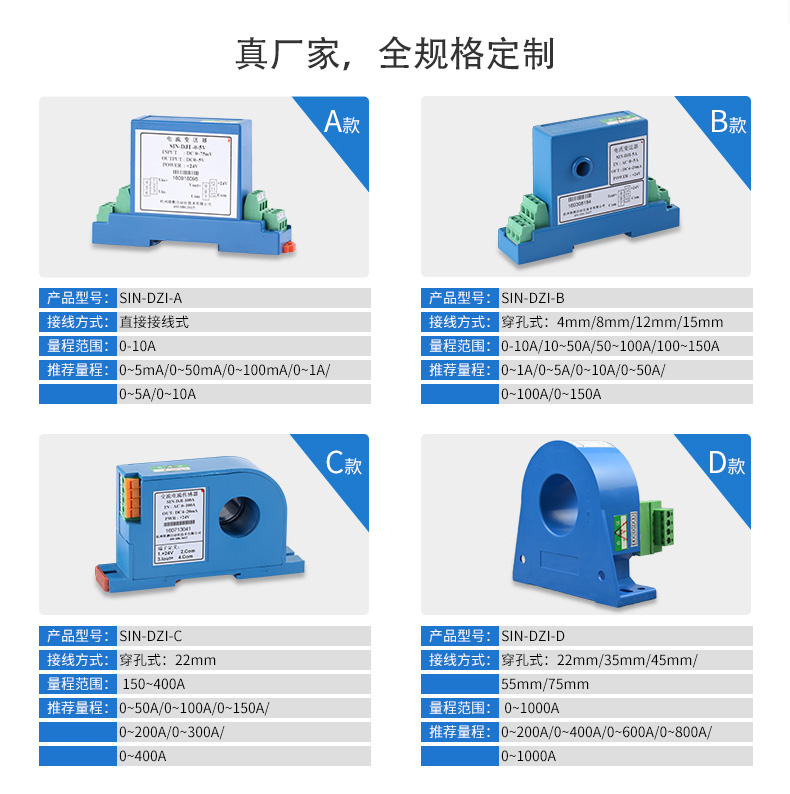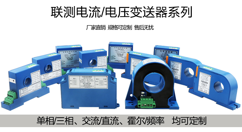 产品简介:电流变送器可以直接将被测主回路交流电流或者直流电流转换成按线性比例输出的DC4~20mA(通过250Ω 电阻转换DC 1~5V或通过500Ω电阻 转换DC2~10V)恒流环标准信号,连续输送到接收装置(计算机或显示仪表)。