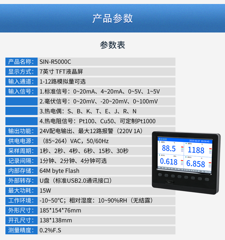 联测SIN-R5000C7英寸无纸记录仪