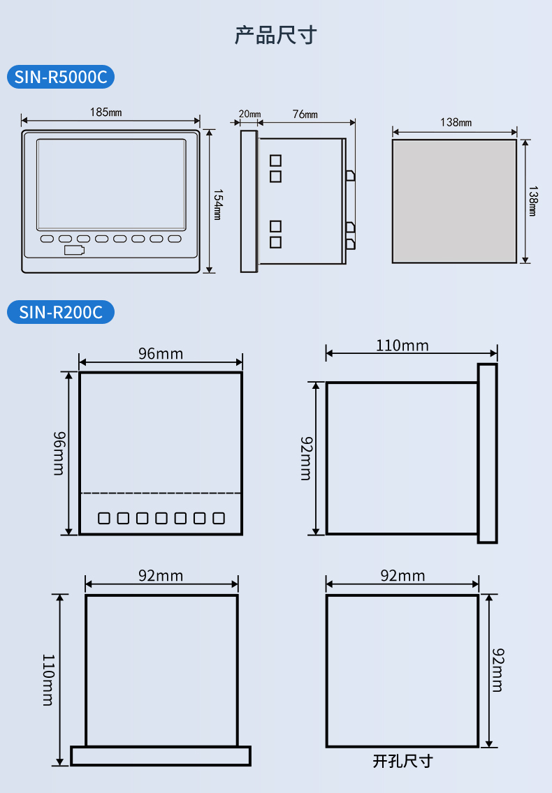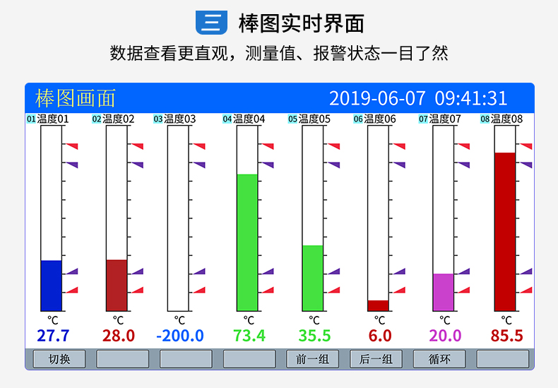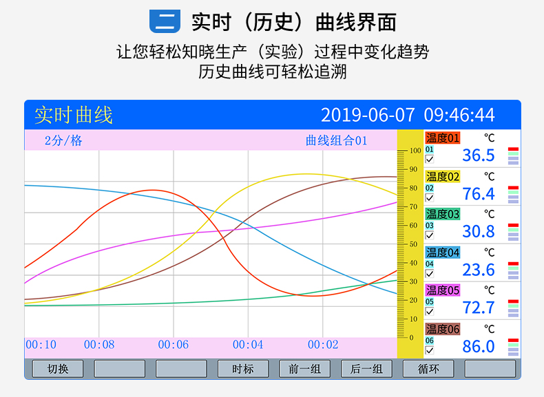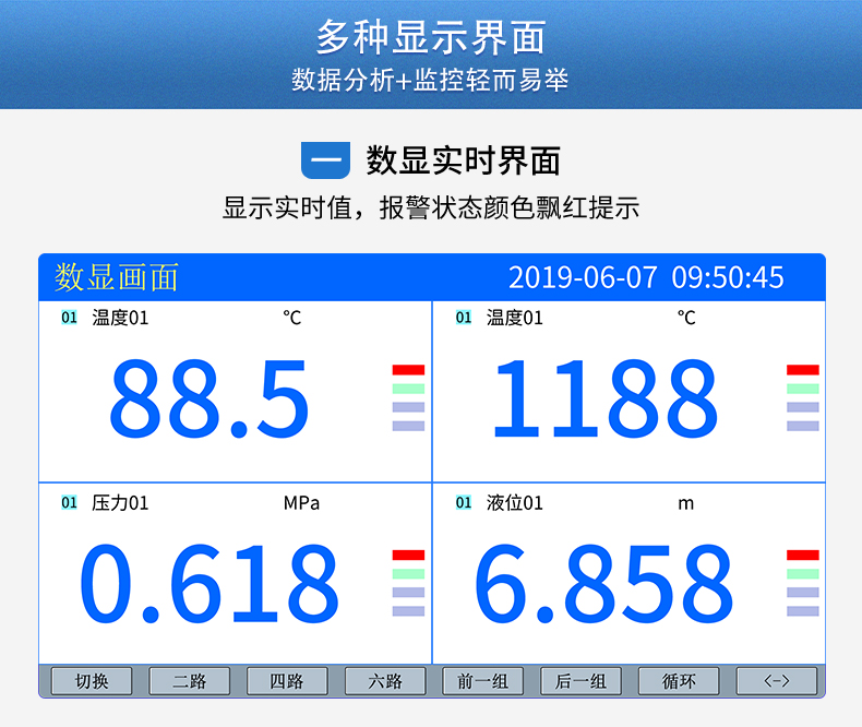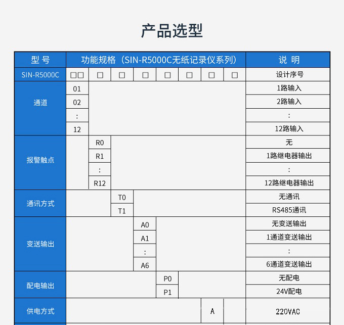 产品简介:SIN-R5000C无纸记录仪 12 路万能输入(可组态选择输入:标准电压、标准电流、热电偶、热电阻、毫伏等)。可带 12 路报警输出或 6 路模拟量变送输出,RS485 通讯接口,以太网接口,微型打印机接口和 USB 接口,SD 卡插座;可提供传感器配电;具有强大的显示功能,实时曲线显示,历史曲线追忆,棒图显示,报警列表显示等。人性化的外观设计的功能体现、可靠的硬件品质、的制造工艺,使仪表具有更高的性能价格比。