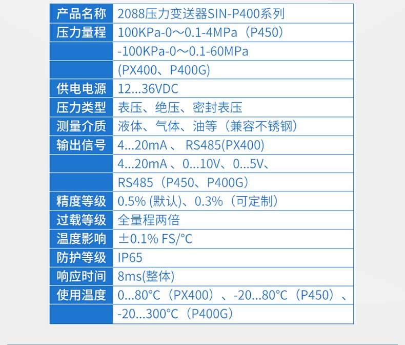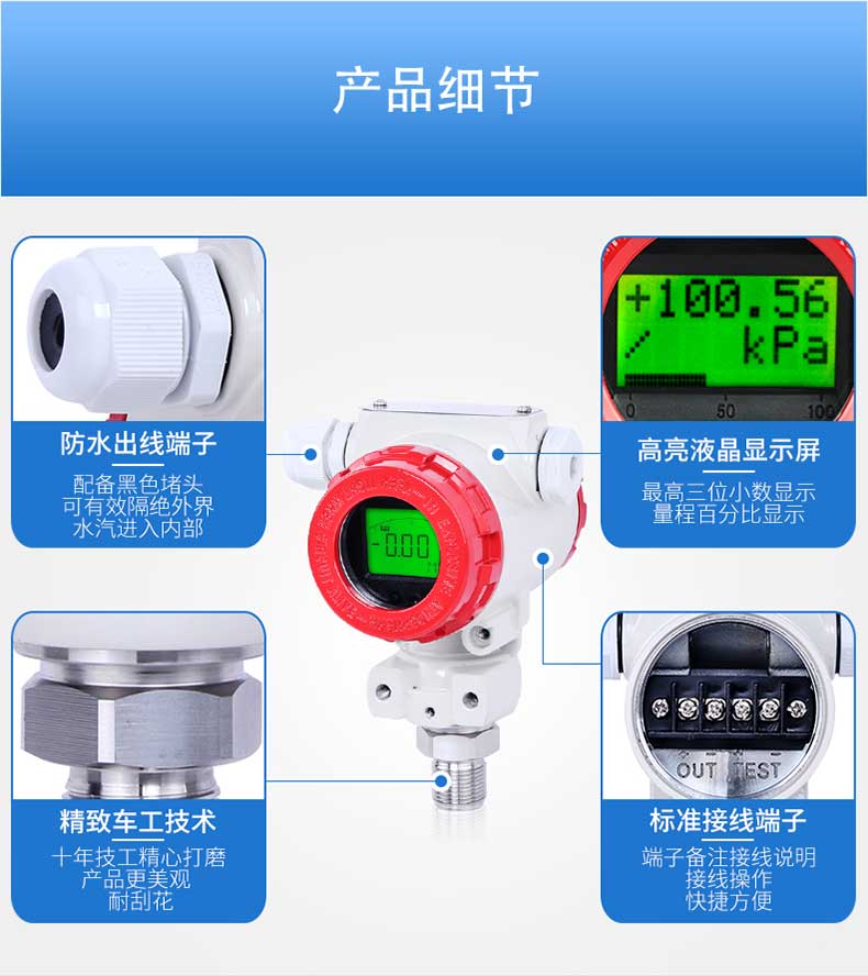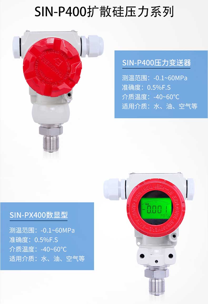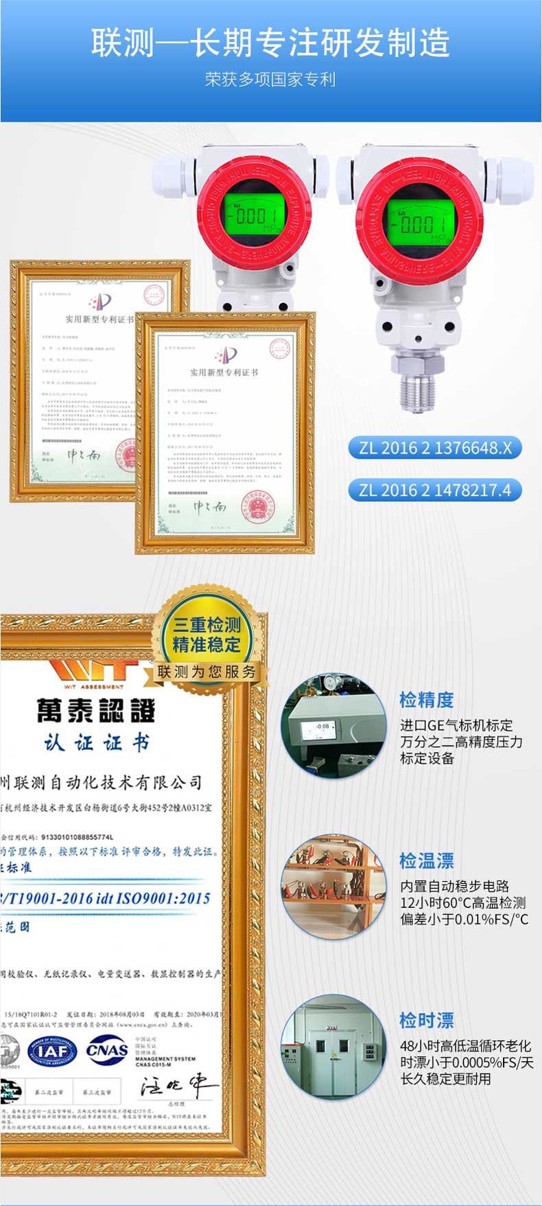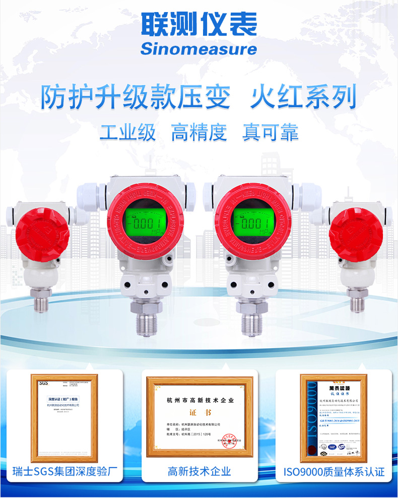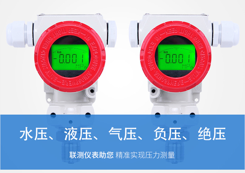 产品简介:联测SIN-P400全数字电路保证精度,保证长期零点和线性稳定,现场液晶显示,多种量程选择,防雷击,防射频干扰,液晶显示可通过按键调整零点和量程,方便用户调试。