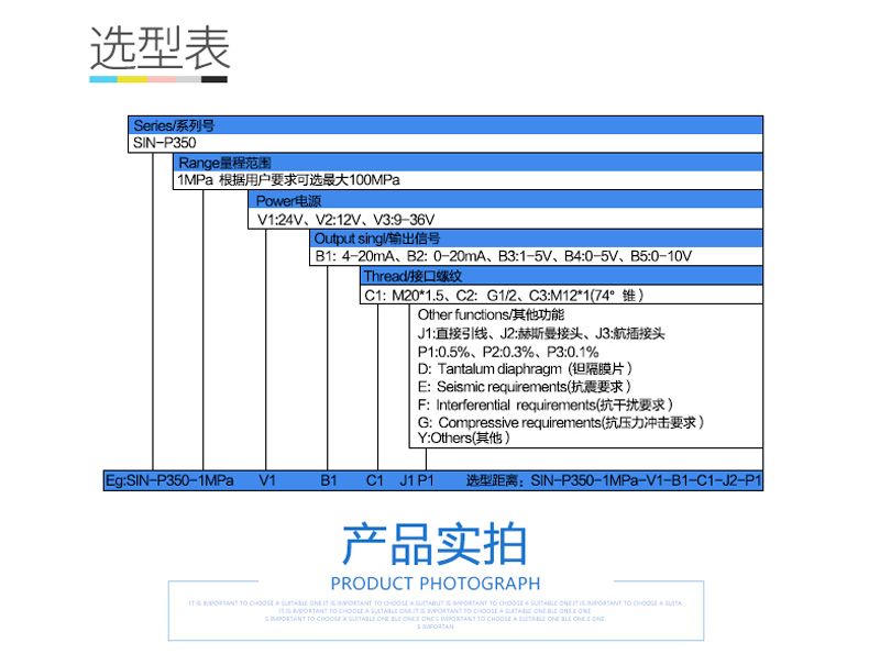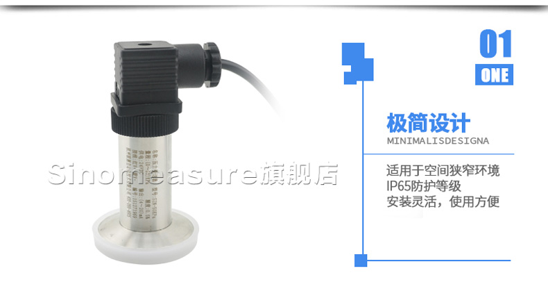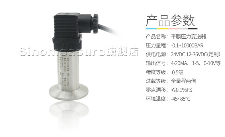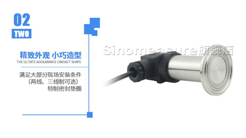 产品简介:SIN-P350卫生平膜型压力变送器,卫生平膜型液位变送器是测量端采用特殊坚固处理的齐平隔离膜片。结构紧凑、耐腐蚀,抗震动、抗微粒冲击、宽范围温度补偿。膜片采用316L不锈钢材料,特别适用于医疗、食品行业有卫生要求的,粘稠流体压力和液位测量,解决了结垢,堵塞,清洁卫生等问题。高精度的信号处理电路位于将传感器输出信号转换为标准输出信号,可直接与计算机、控制仪表、显示仪表等相连。采用一体化全不锈钢结构,经过多次不锈钢焊接,实现了全固态设计,安装方便。广泛应用于食品、医药、卫生及酿酒工业等部门。