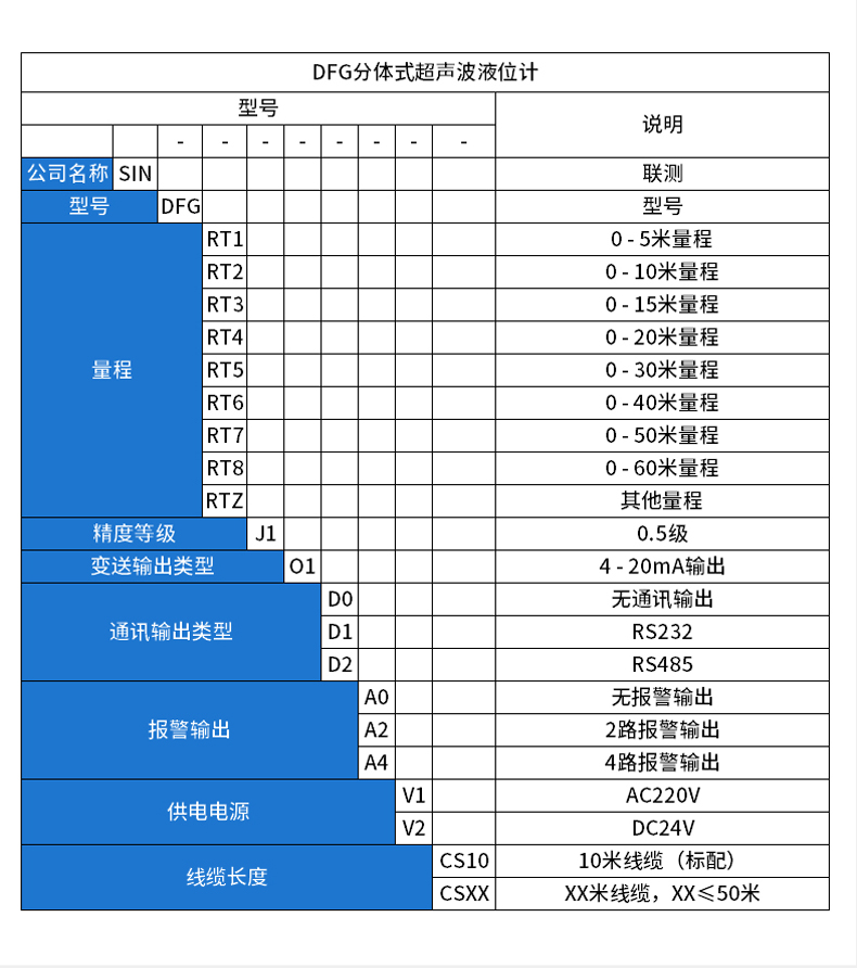 联测SIN-DFG分体式超声波液位计