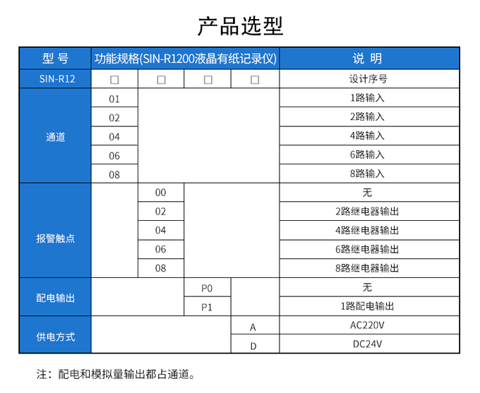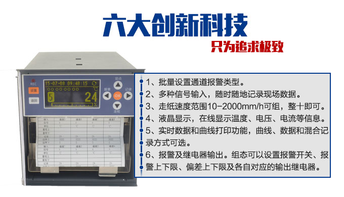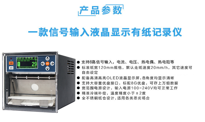 产品简介:SIN-R1200有纸记录仪最多具有8路输入通道,通道之间采用点点隔离的方式。每路通道均可以接收多种信号,如:热电偶信号、热电阻信号、电压信号、电流信号等。记录仪可以对被测信号进行数字显示、趋势记录以及数字记录,能在110mm宽的纸格上同时记录刻度值、时间以及每个信号的曲线并且将通道号印在各通道的轨迹旁边。
